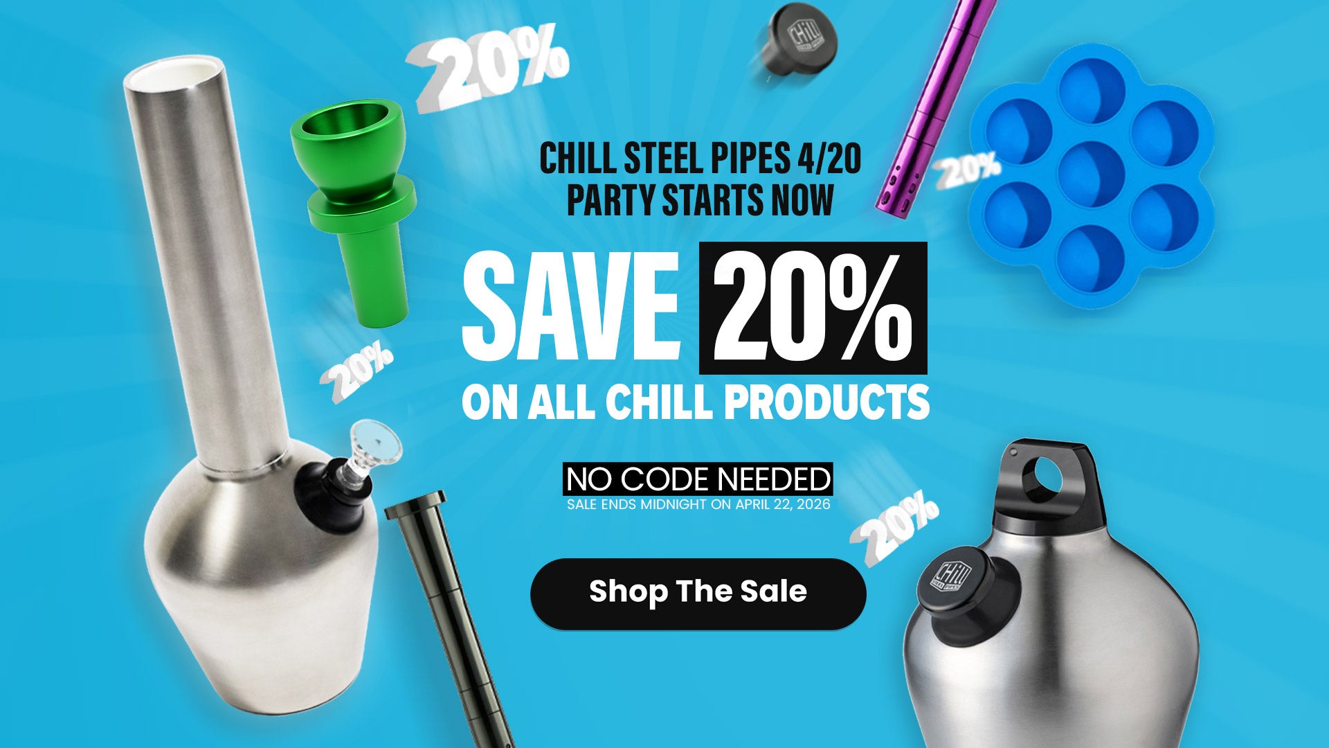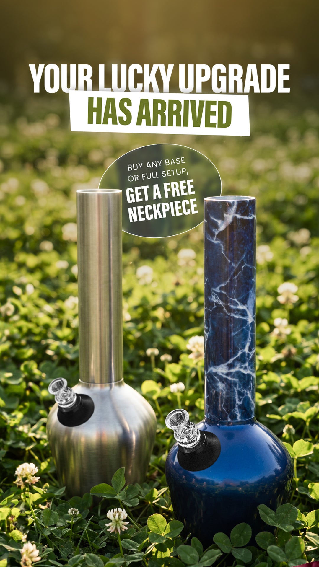 Chill's two piece design and threaded connection makes it easier to clean and add ice. When you want to change up the look, you can choose from a variety of bases and neckpieces.