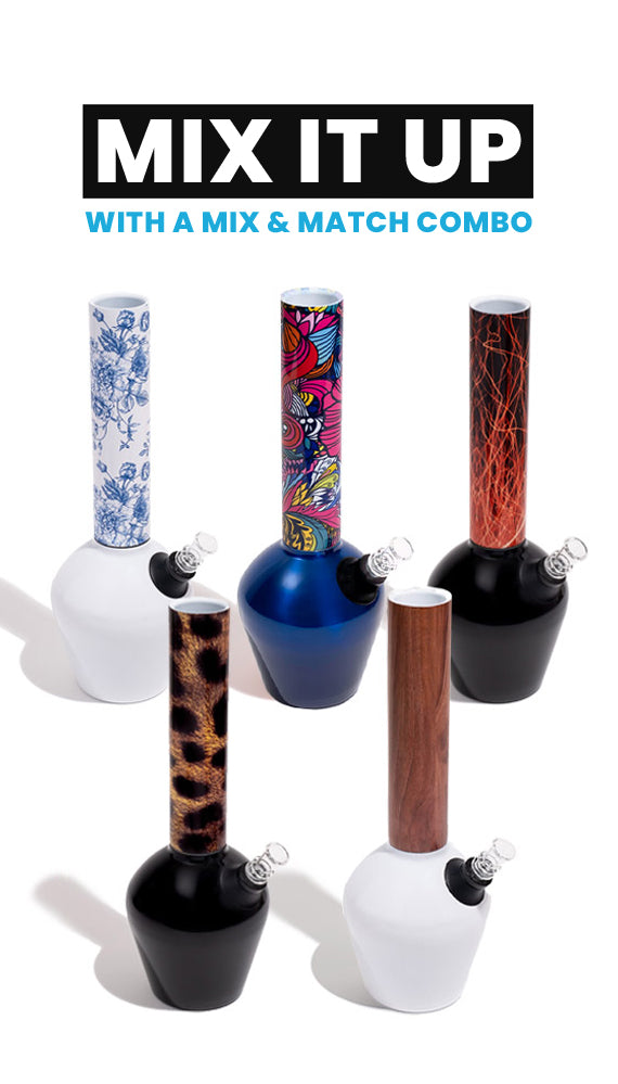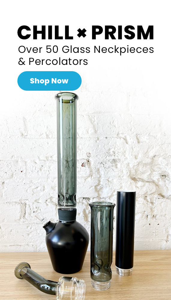 Chill's two piece design and threaded connection makes it easier to clean and add ice. When you want to change up the look, you can choose from a variety of bases and neckpieces.